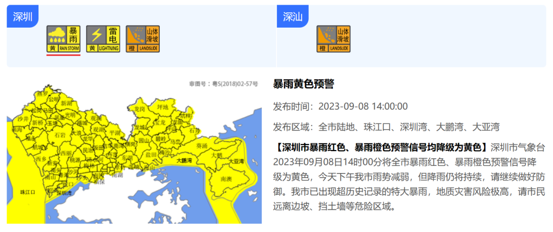 深圳暴雨气象预警信号降级