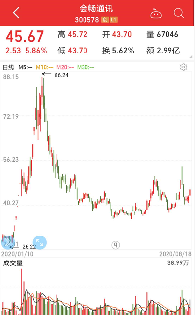 会畅通讯回调幅度最大,公司长期专注于云视频领域,在云视频领域占据领先地位。年初在云办公题材的热炒下,会畅通讯于3月3日盘中创下历史高点,其昨日收盘价较历史高点已回调49.89%。