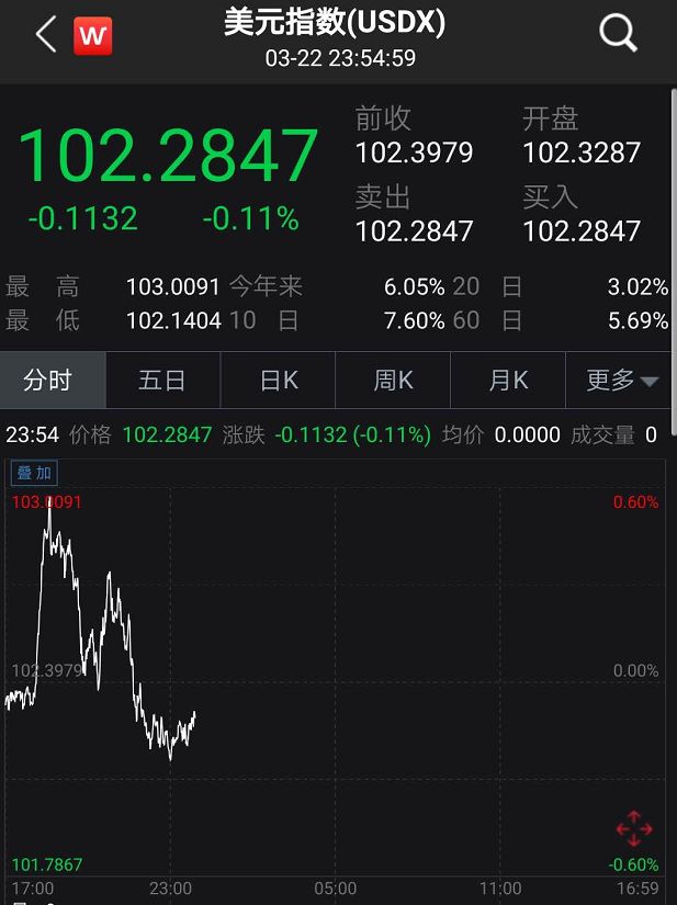 目前,美元指数盘中下跌超1%,但随后指数重新回升。美元指数仍在102位置之上,对美元流动性恐慌的担忧尚未解除。