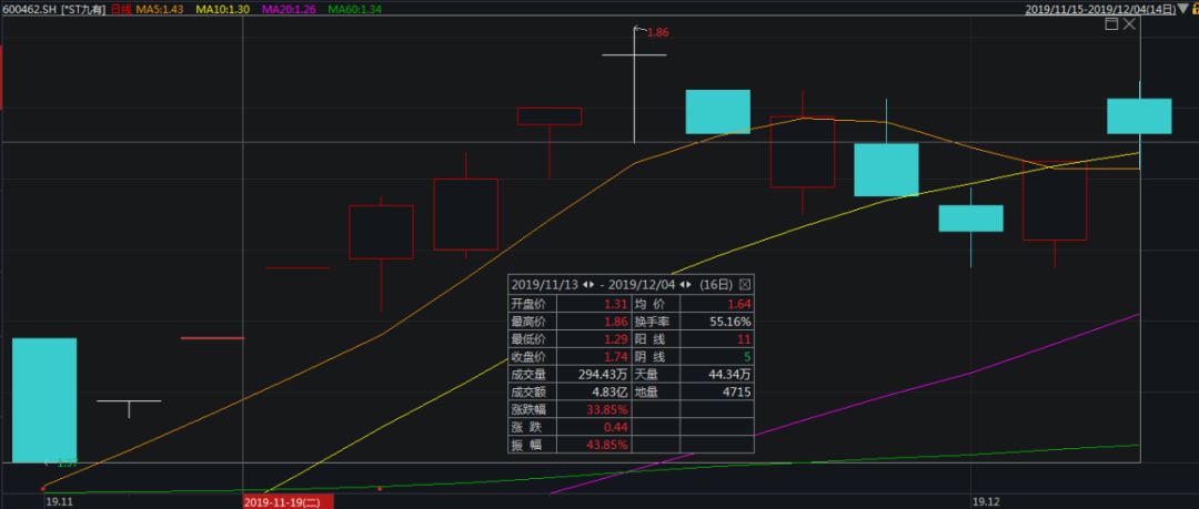 12月3日,*ST九有股价再度涨停,实现19天11板走势。消息面上,身处困境之中的*ST九有11月6日下午发布公告称,公司7名董事成员中有3人提出辞职,其中包括公司董事长徐莹泱。