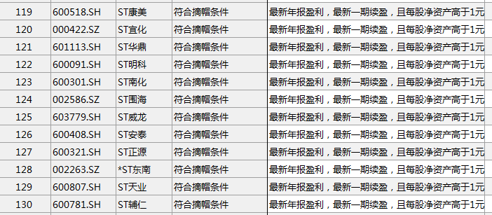同时,ST安泰、ST华鼎、ST康美、ST围海等12只个股符合摘帽条件。另外,*ST信威、*ST百花、*ST华业等2019年业绩尚不确定,是否保壳成功,有待进一步确定。