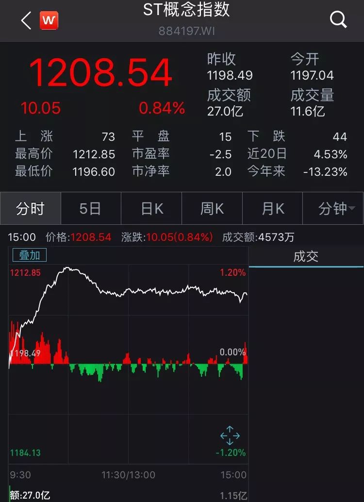 12月4日,两市股市盘中维持窄幅震荡态势,ST板块走势活跃。从收盘情况看,ST概念指数上涨0.84%,优于上证指数和深证成指的涨幅,板块内*ST 鹏起、*ST 中捷、ST百特 10多只个股涨停。