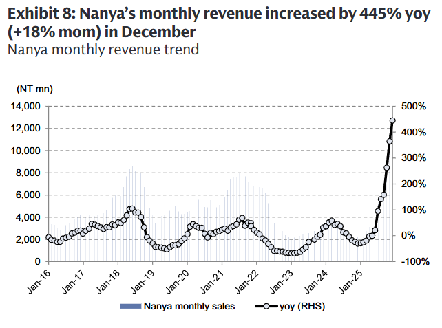 在这一背景下,中国台湾地区的DRAM供应商南亚科技营收增速惊人。