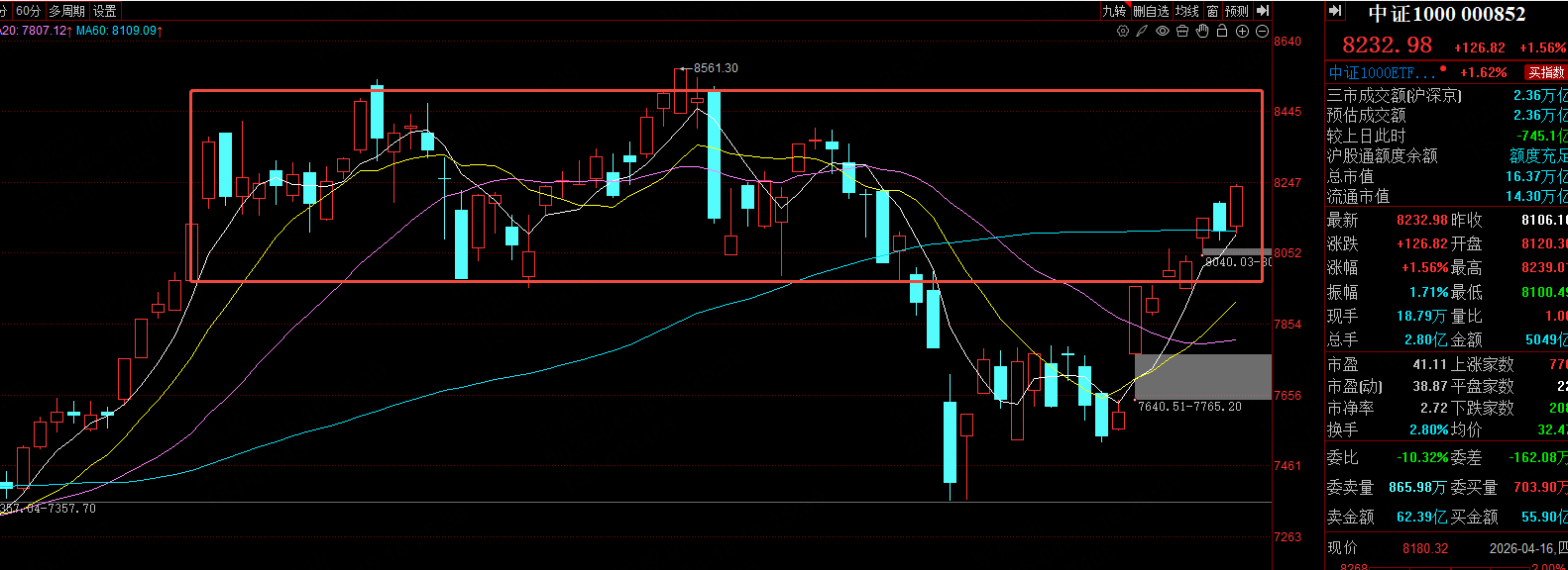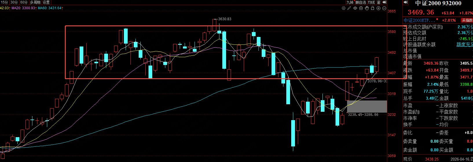 指数方面上证指数有60日均线压力,目前来看只是象征性意思一下,只要市场赚钱效应强这点压力不算啥。赚钱效应从哪里看?就看中证1000和中证2000,今天都是城管突破60日均线压力位,成功站上箱体平台。