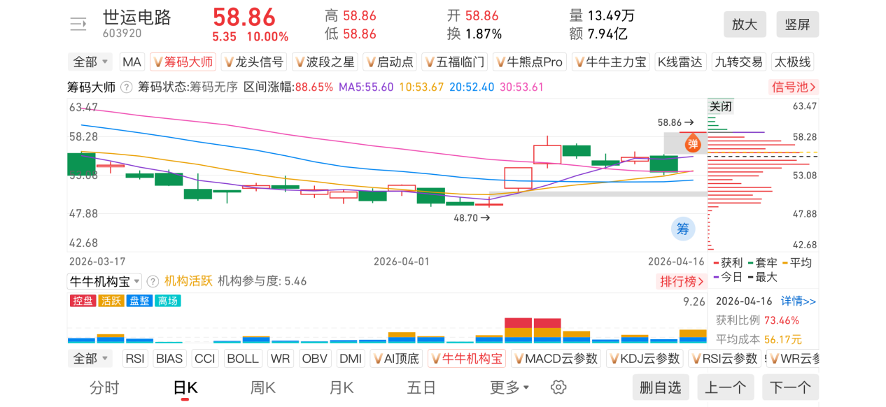 1)20260416-世运电路-603920-【筹码大师】和【牛牛机构宝】-近期出现弹信号且底部量柱由绿转红