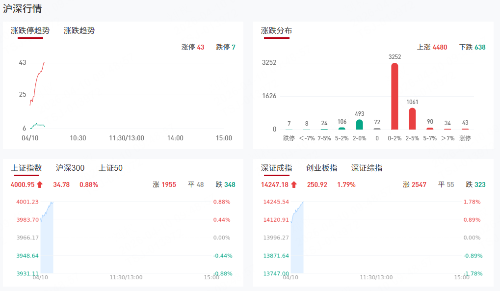 4月10日早盘,锂电产业链和券商股发力,上证指数盘中突破4000点。