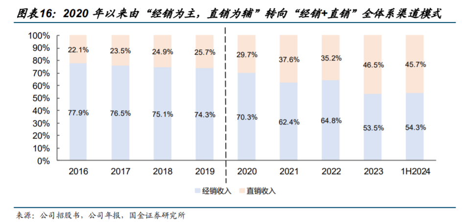 2020年开始,公司结合“多品类、多品牌、多性能”产品矩阵特点,由“经销为主,直销为辅”转向“经销+直销”的全体系渠道模式,1H24公司直销收入比重已由2019年的25.7%提升至45.7%。公司由经销为主转向“经销+直销”的全体系渠道模式,实质上反映出下游客群由传统民商用消防市场逐步向工业/行业消防、智慧消防等新兴市场切换的趋势。