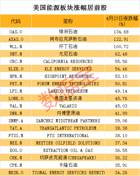 不过受益于油价的反弹,美股能源板块逆势上涨。西方石油涨6.53%,埃克森美孚涨近3%,雪佛龙上涨2.79%。