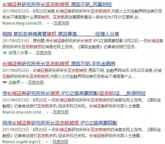 两年前,也就是2017年的时候,券商圈有一事件在圈内引发关注,就是长城证券在准备IPO的节骨眼上,研究所所长区某突然“失踪”了。