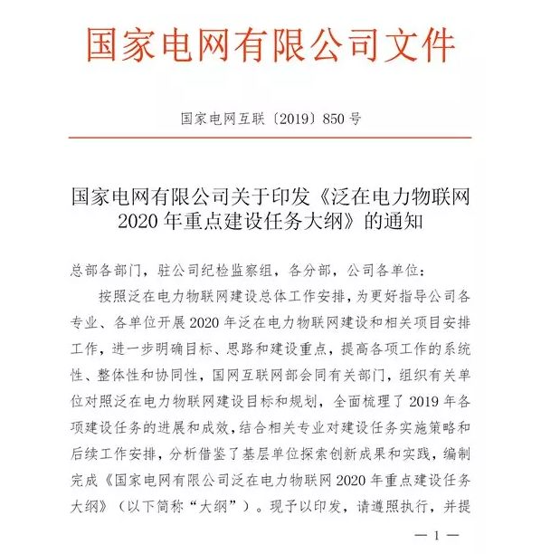 在通知中,国网公司要求下属各部门和单位对照大纲,加快确定本专业、本单位泛在电力物联网2020年重点建设任务,为编制建设方案做好准备。