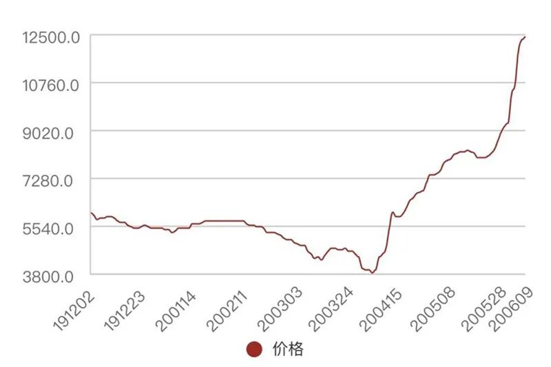 6月第一周均价已经飙升到10340元/吨 来源:百川盈孚