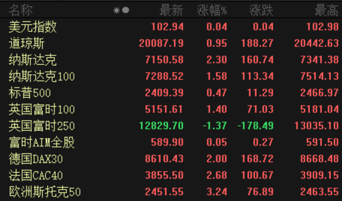 欧洲股市方面,周四欧股也集体反弹。截止收盘,英国富时100指数涨幅为1.40%,报收于5151.61点。德国法兰克福股市DAX指数上涨2.00%,报收于8610.43点。巴黎股市CAC40指数上涨2.68%,报收于3855.50点。