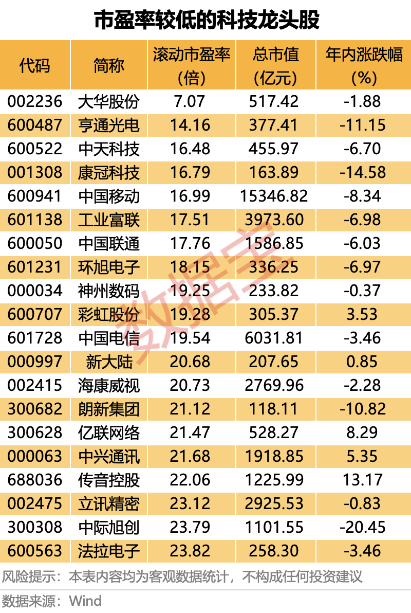 哪些科技龙头股估值较低?不妨从三个角度来看。