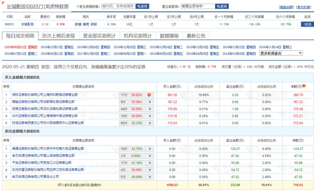 虽然看起来只是一份内容空洞的战略合作协议,但在网红概念的推动下,长城影视在5月20日-21日连续拉出涨停板。5月21日盘后,长城影视发布股票交易异常波动公告,称不存在应披未披事项,并将股价暴涨的原因归结于上述战略合作的公告。