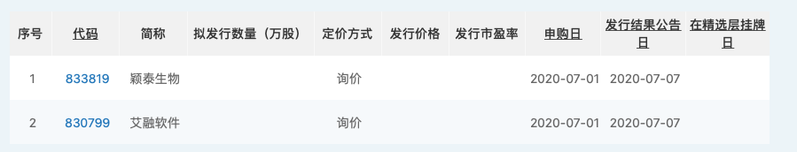 精选层打新7月1日登场!颖泰生物、艾融软件率先开启申购