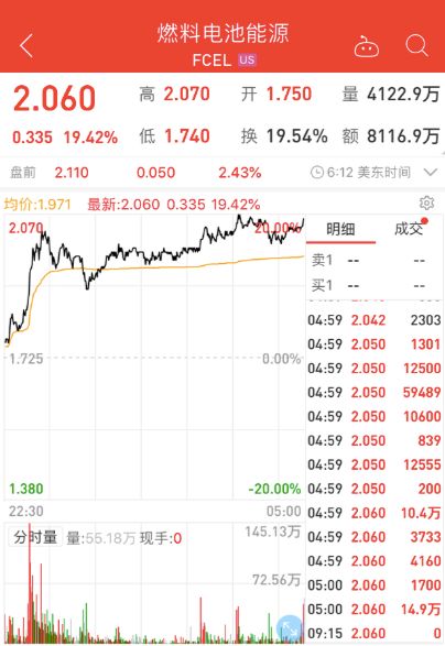 美股燃料电池板块拉升,是今日市场燃料电池板块持续走强最直接的原因。美股燃料电池能源大涨19.42%。2020年以来,燃料电池能源、巴拉德动力系统和普拉格能源等美股持续上涨。
