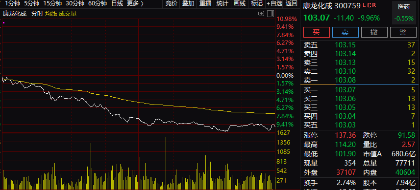 截至A股收盘,康龙化成接近跌停,该股过去一年多时间,涨了近三倍。