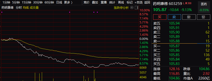 药明康德,按前一天收盘价计算,AH总市值大约在2800亿元人民币,可谓是市场上绝对的医药大白马,而且该公司刚刚发布一则认购预案,标的公司的前景看上去还不错,但这并未阻止该公司大跌。
