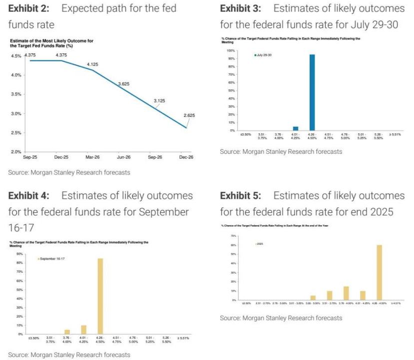 大摩预计鲍威尔会就最新的CPI报告中承认关税带来的压力,并再次强调“贸易、移民、财政和监管政策的调整仍在不断变化,其对经济的影响仍存在不确定性”。尽管存在相当大的不确定性,但政策已做好准备,他将再次强调耐心:需要大量的等待和观望。8 月 1 日可能还会出现更多关税,持续的贸易政策不确定性使FOMC对双重使命的两方面都存在风险感到担忧。