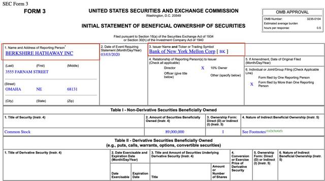 纽银梅隆银行2019年年报显示,伯克希尔·哈撒韦当时持有7976.51万股,持股比例为8.86%。3月3日增持923.49万股,按照当日收盘价每股38.83美元估算,股神这笔交易可能斥资3.59亿美元。