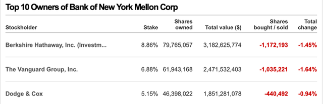 纽约梅隆银行前三大股东