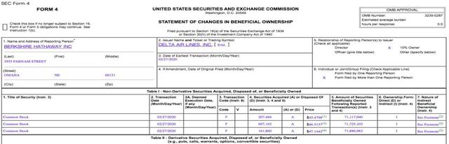 伯克希尔·哈撒韦此前发布的2019年的财报显示,其前十大重仓股中,达美航空位居第九位。截至2019年末,伯克希尔持有7091万达美航空股票,占公司持股比例的11%。