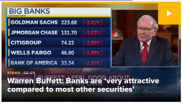 巴菲特:银行股现在非常有吸引力