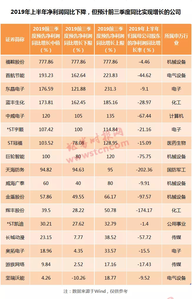 随着半年报的收官,不少A股公司也对2019年三季报业绩作出预测,总体来看,预忧公司略多于预喜公司。
