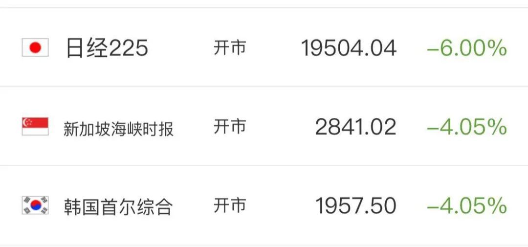 周一亚盘,受到国际油价暴跌影响,日经225指数大幅低开,北京时间10时05分,该指数跌幅达5.61%,失守20000点关口,报19598.5点。