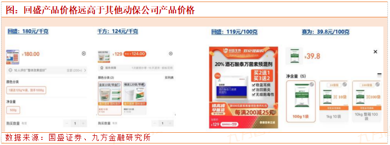 回盛属于行业第一梯队龙头,以淘宝官方店价格作为对比,与行业中小企业价格存在较大差异,充分体现公司产品力和议价能力。