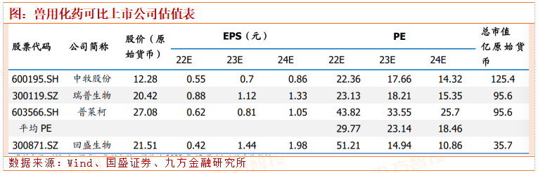 2. 水产、禽类、宠物等横向拓展已初见成效: 水产:水产药预计 2022 年实现可观增长,收入占比有所提升,且水产药行业渗透率低,成长性强,可一定程度抵御其他养殖板块周期波动。禽药:预计禽药市场地位逐步稳固,2018 年至今头部规模场客户开发顺利,现有客户包括圣农发展、立华股份等,并仍有进一步拓展空间。宠物动保:宠物多项产品在研,后续驱虫药、消炎药等大单品上市可期,宠物赛道市场潜力可观。