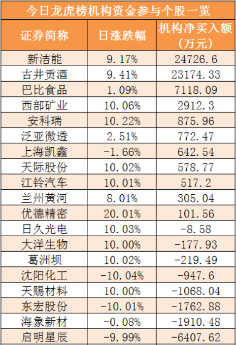 盘后龙虎榜数据显示,机构现身19股,其中新洁能等11股呈现机构资金净买入,启明星辰等8股呈现机构资金净卖出。
