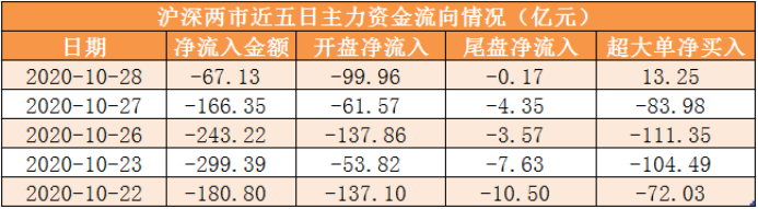 今日沪深两市主力资金开盘净流出99.96亿元,尾盘净流出0.17亿元,两市全天资金净流出67.13亿元。