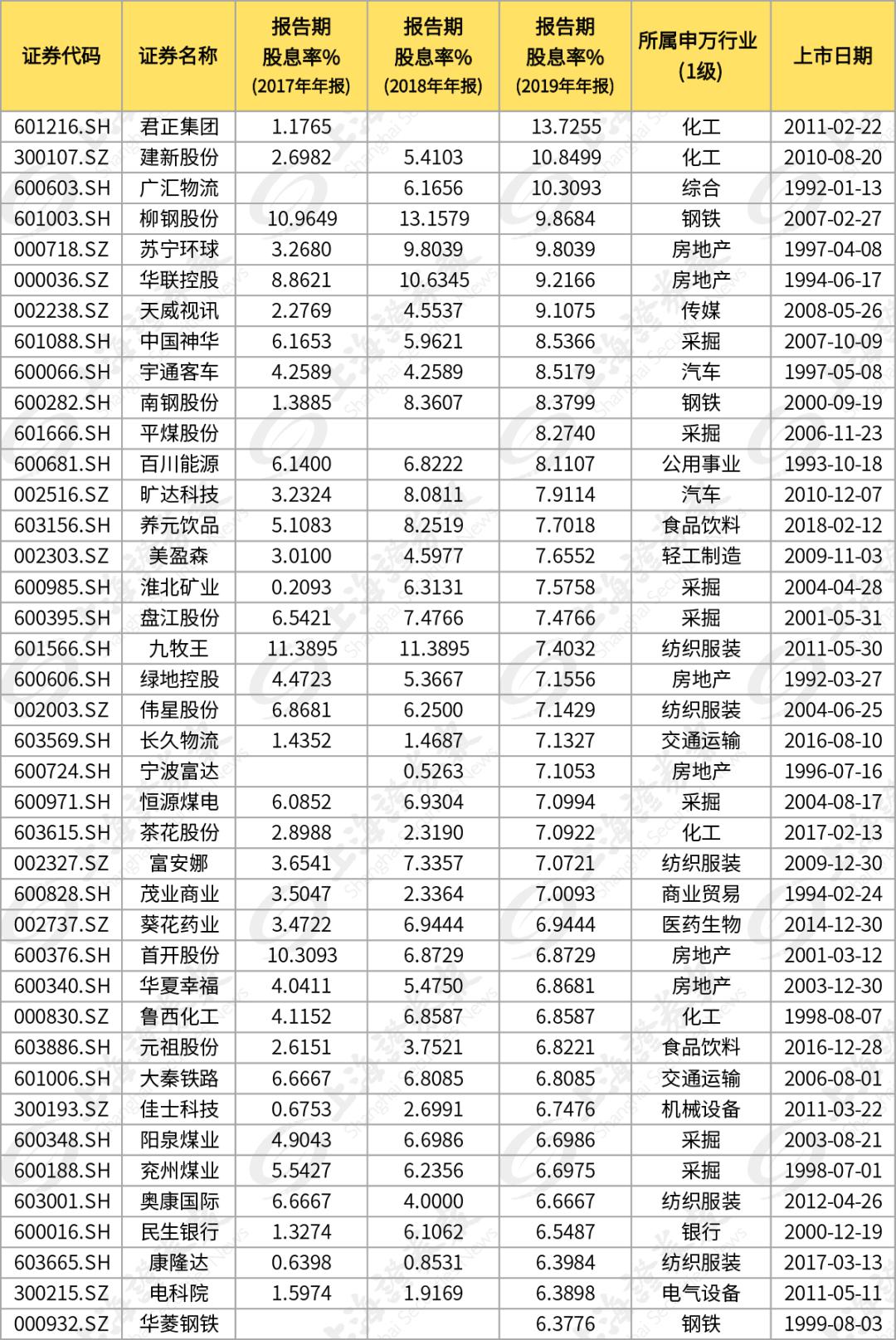 如钢铁板块中,柳钢股份当前的股息率为9.9%,南钢股份的股息率为8.4%,华菱钢铁、武进不锈和宝钢股份的股息率也均超过6%。在煤炭板块中,中国神华和平煤股份的股息率均超过8%,淮北矿业、盘江股份和恒源煤电的股息率均超过7%,兖州煤业股息率为6.7%。
