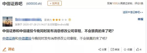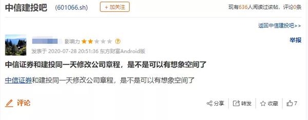 7月28日晚间,中信证券发布《关于修订完善公司<章程>》的公告》以及相关董事会决议、增加临时提案等内容。同期,中信建投也发布变更公司章程的公告。这样的巧合,不禁让市场想入非非。