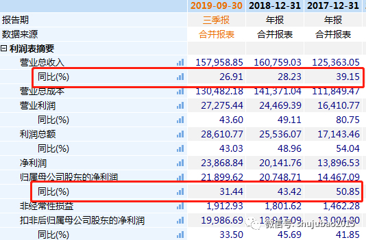 数据显示,该公司的营业总收入在2017年至2019年9月30日,分别为12.54亿元、16.08亿元、15.8亿元,同比增速分别为39.15%、28.23%、26.91%。