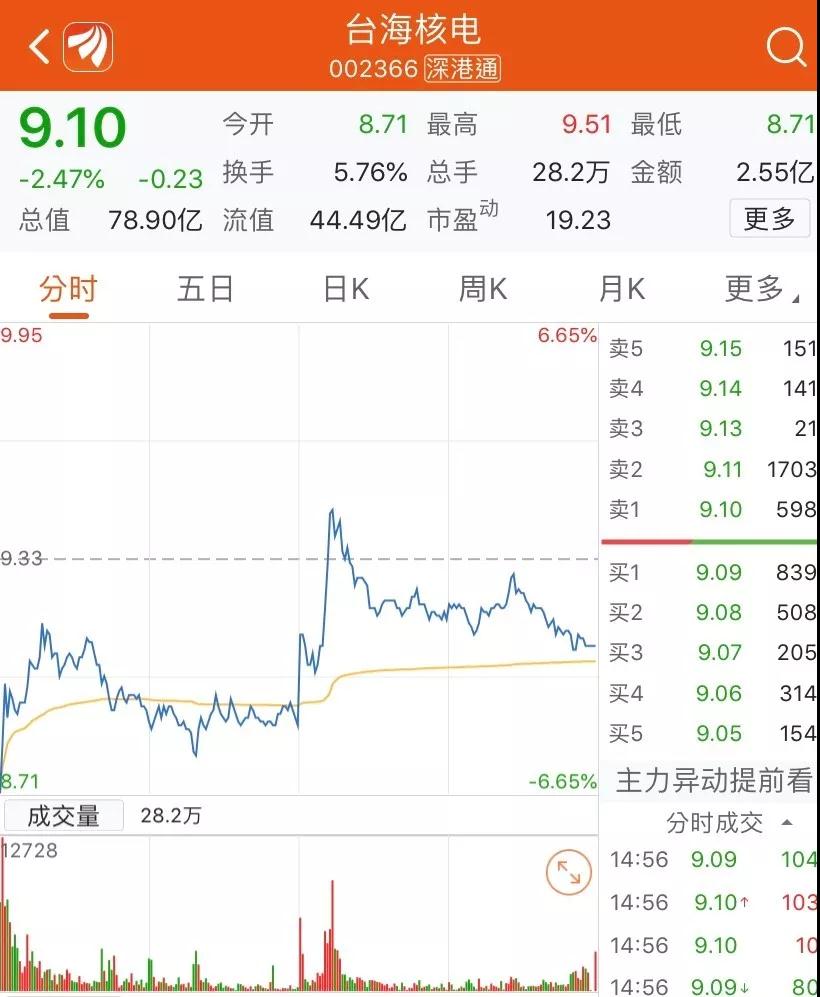 8月1日,台海核电开盘后下挫,一度跌近7%。
