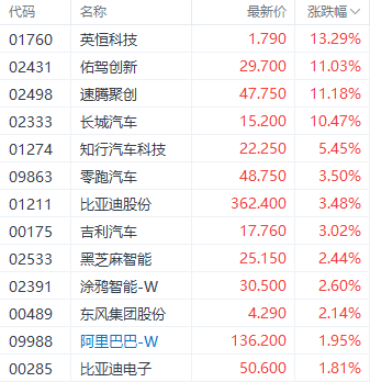 港股智能驾驶股这一表现主要受美股激光雷达龙头禾赛科技业绩超预期提振。