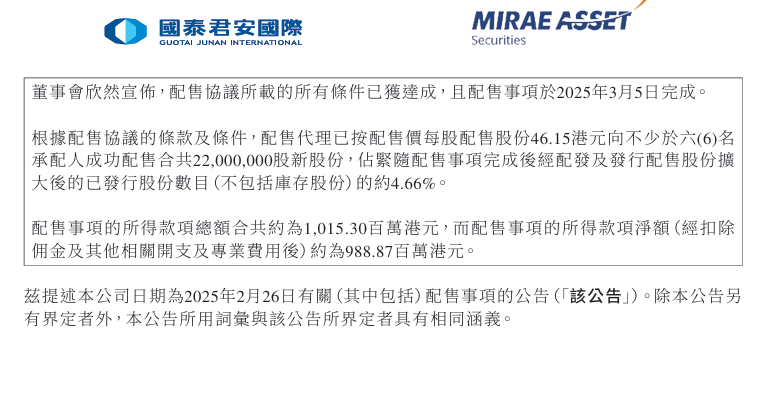 此外,该公司成功配售2200万股,募资净额约9.89亿港元,资金将重点投向研发(70%)、生产线升级(20%)及战略合作探索(10%)。