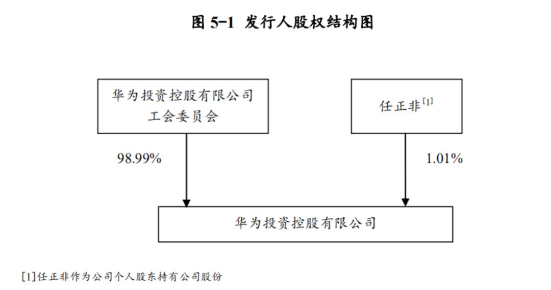 作为一家没有实控人的通讯巨头,华为一直以其员工持股计划为人乐道。根据募集说明书,在华为内部,由115名持股员工代表及18名候补持股员工代表组成的工会委员会控制98.99%的股份,而华为公司总裁任正非先生仅持股占比1.01%。