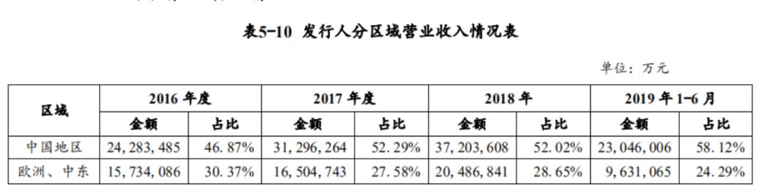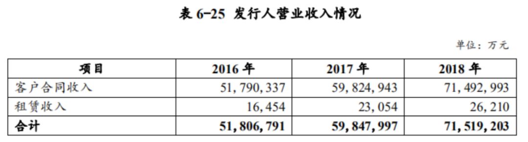 具体来看,说明书显示,2016-2018 年及 2019 年上半年,华为实现营业收入分别为 5,180.68 亿元、5,984.80 亿元、7,151.92 亿元和 3,965.38 亿元,同比分别增长 31.58%、15.52%、19.50%和 22.86%,2016-2018 年年均复合增长率达 17.49%。2019 年上半年营业收入较 2018 年上半年同比增加 7,379,352 万元,增幅22.86%。