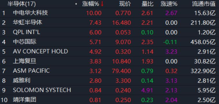 在港股市场上,半导体产业和软件服务行业股票也出现一定上涨。