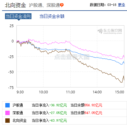 截至今日收盘,北上资金合计净流出63.97亿元,沪股通流出36.92亿,深股通流出27.05亿元。3月11日以来日均净流出达到91亿元,6个交易日合计净流出550亿元。