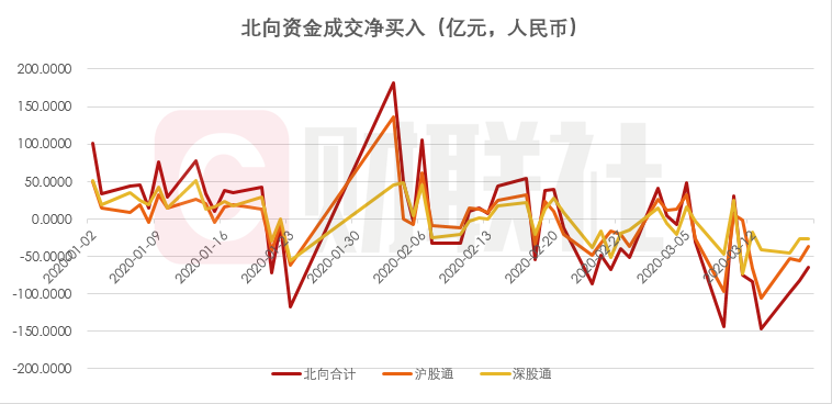 据财联社统计显示,年初北上资金先大幅流入,但从2月底至今逐步流出,年初至今累计净流入已经从高峰时期的804亿元变为净流出超100亿。二月底之前,中国“抗疫”,但海外资金仍持续流入A股。
