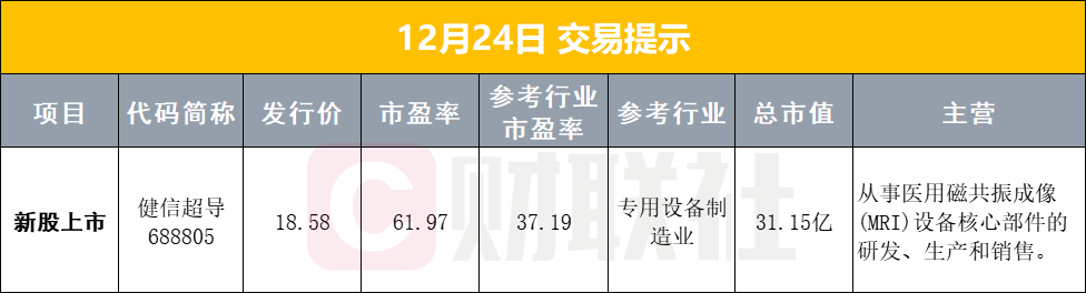 6、金风科技公告,和谐健康12月19日至12月22日减持3189万股,不再是持股5%以上股东。
