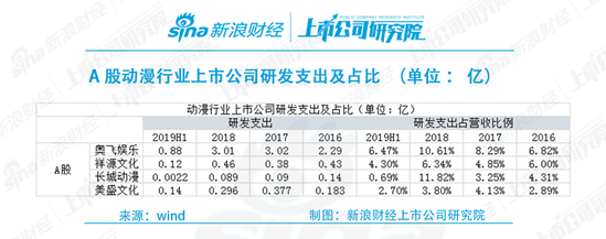 对比看来,A股动漫行业上市公司的研发支出占比相对较低。