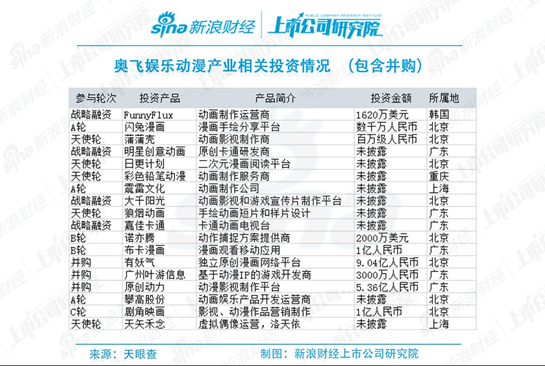 奥飞娱乐不及长城动漫激进,不及美盛文化克制,但在投资并购的数量上远胜于上述二者。