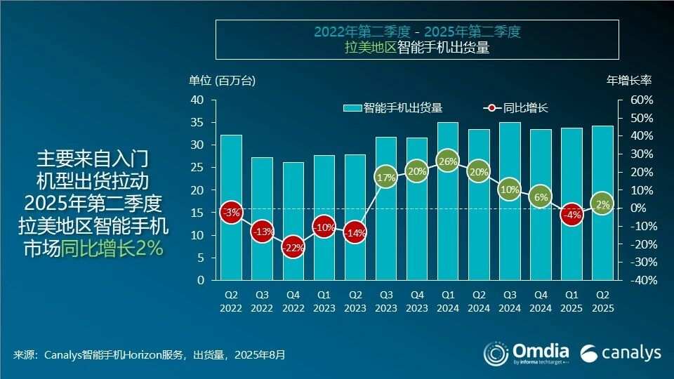 Canalys:第二季度拉美智能手机市场出货量同比增长2%达3430万部