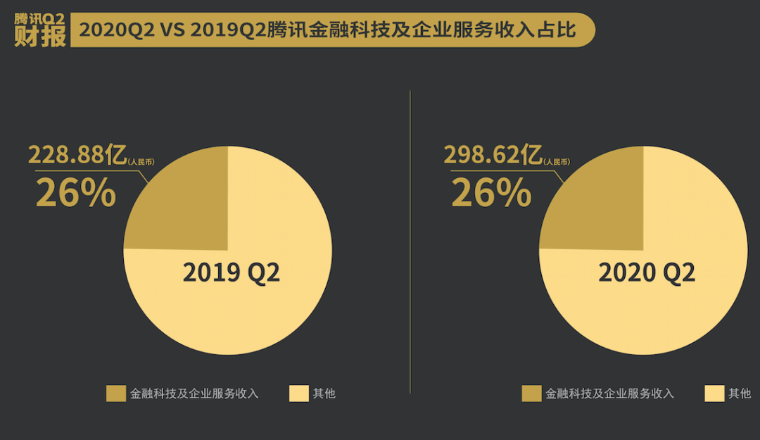 除了增值服务,腾讯第二季度金融科技及企业服务收入同比增长三成,达到298.62亿元。