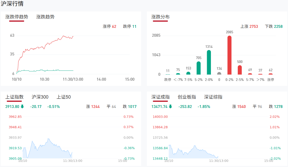 市场早间震荡调整,三大指数集体下挫,大小指数明显分化,中小盘股表现较强。沪深两市半日成交额1.64万亿,较上个交易日缩量713亿。盘面上热点高低切换,电池、半导体热门赛道股集体调整,先导智能低开低走大跌超11%,前期表现强势的燕东微、华虹公司、佰维存储等芯片产业链个股集体重挫。上涨方面,今日热点集中在电网设备、核电、军工等方向,其中新特电气20cm涨停,国电南自等多股涨停。风电设备概念股逆势走强,吉鑫科技6天4板。核电板块延续强势,合锻智能3连板,安泰科技、中国核建2连板。